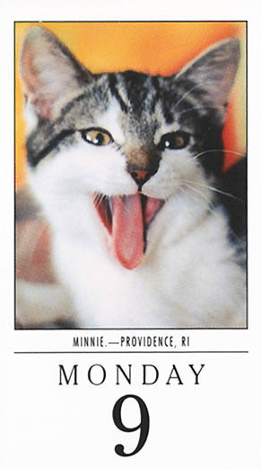 Hot News:Minnie Pearl Hogan-Gomes has been chosen to be featured in the #1 selling cat calendar in the world - The 365 Kittens A Year Calendar. The great news was announced with the following letter on September 5, 2001: Dear Al Gomes and A. Michelle, Congratulations! I'm delighted to inform you that you are a winner in the 2002 Kitten Calendar Contest. Your winning entry will appear in The 3-6-5 Kittens A Year Calendar for 2002. Your photograph of Minnie makes a wonderful contribution to the calendar and will appear on September 9, 2002. I'm especially happy to enclose a complimentary copy of the calendar, which I hope you'll enjoy all year long. Best wishes for the coming year. Sincerely, Ina Weisser This is the write-up we submitted with photos of Minnie Pearl (along with her brother Bowie Alexander): 'Brother and sister that were adopted by us from our vet who found them on his doorstep with their mom. They're very bright, very playful, very happy kittens, and they come running when we call their names!' Congratulations to Minnie Pearl! She has been beaming since the news arrived here at Big NOISE Headquarters. You can e-mail all of our kitties fan mail at [email protected] |